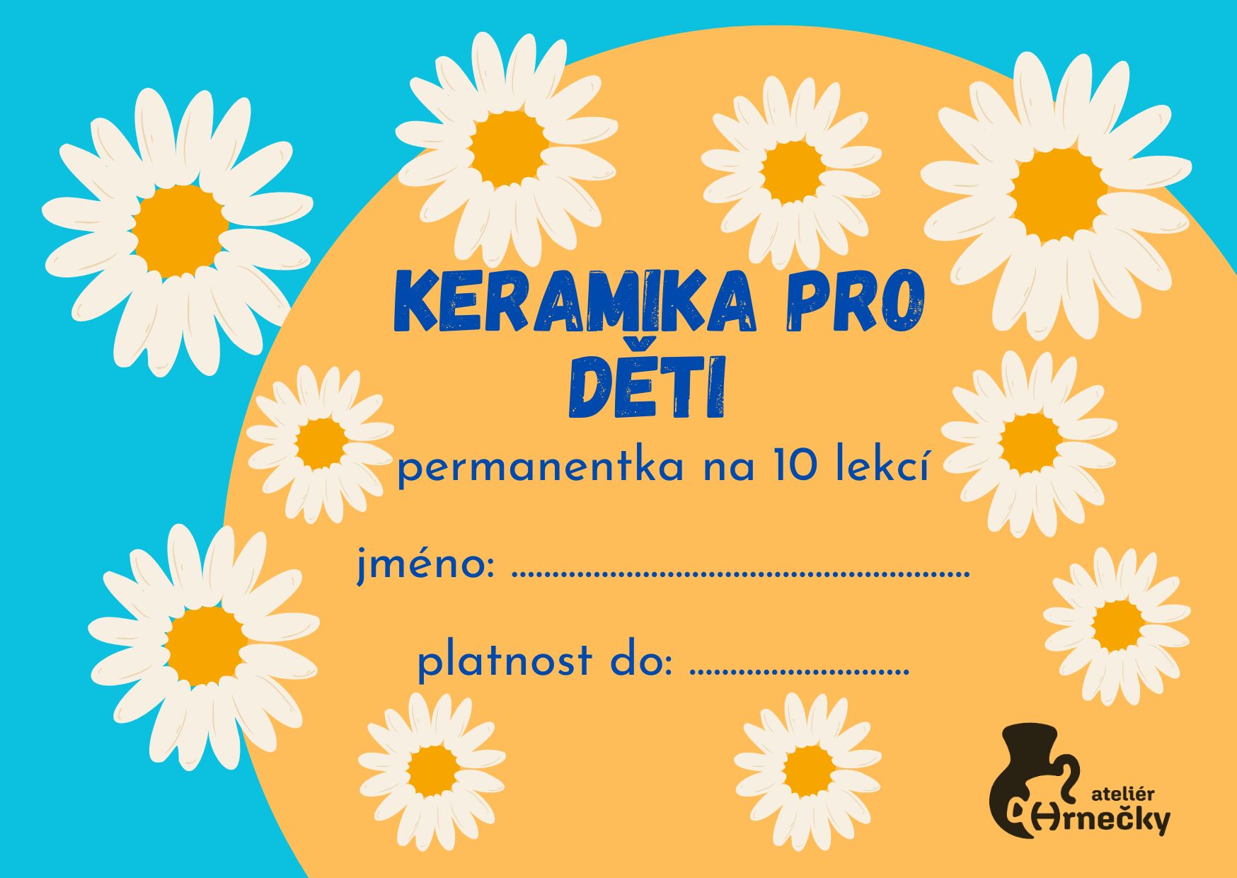 10 lekcích kurzu Keramika pro děti 6-12 let nebo Keramika pro děti 3-6 let s rodiči.